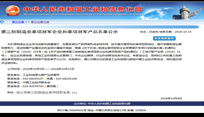 10 月8 日,工业和信息化部产业政策司公布了《关于第三批制造业单项冠军企业和单项冠军产品名单公示》,新疆开云手机入口站官网-开云online(中国)公司根据《关于印发< 制造业单项冠军企业培育提升专项行动实施方案> 的通知》(工信部产业〔2016〕105 号)和《关于组织推荐第三批制造业单项冠军企业和单项冠军产品的通知》(工信厅联产业函〔2018〕19 号)要求,组织材料申报了制造业单项冠军产品- 异亮氨酸,截至目前已顺利通过审核并公示,公示于10 月15 日结束。异亮氨酸单项冠军产品的成功授予, 将形成全球市场、技术等方面领先的单项冠军地位,提升新疆开云手机入口站官网-开云online(中国)公司的国际竞争力。